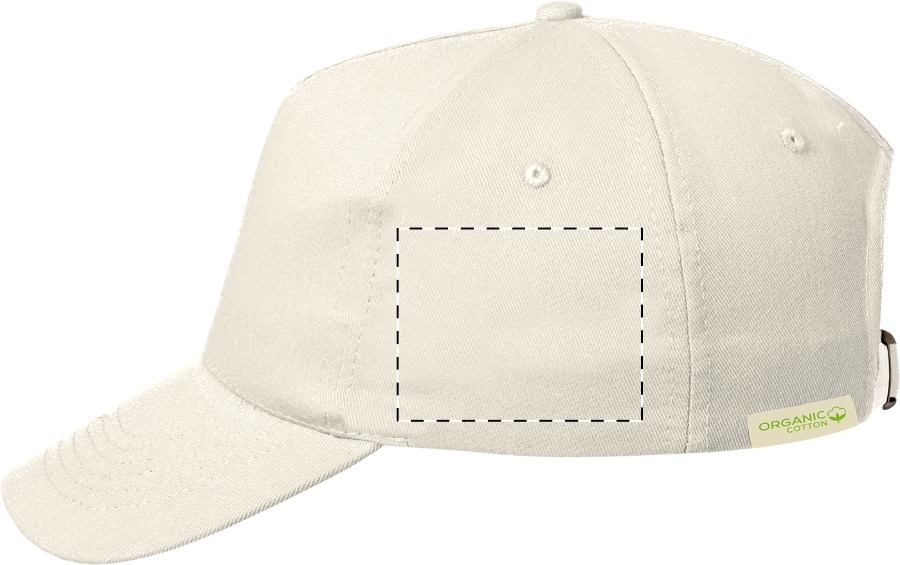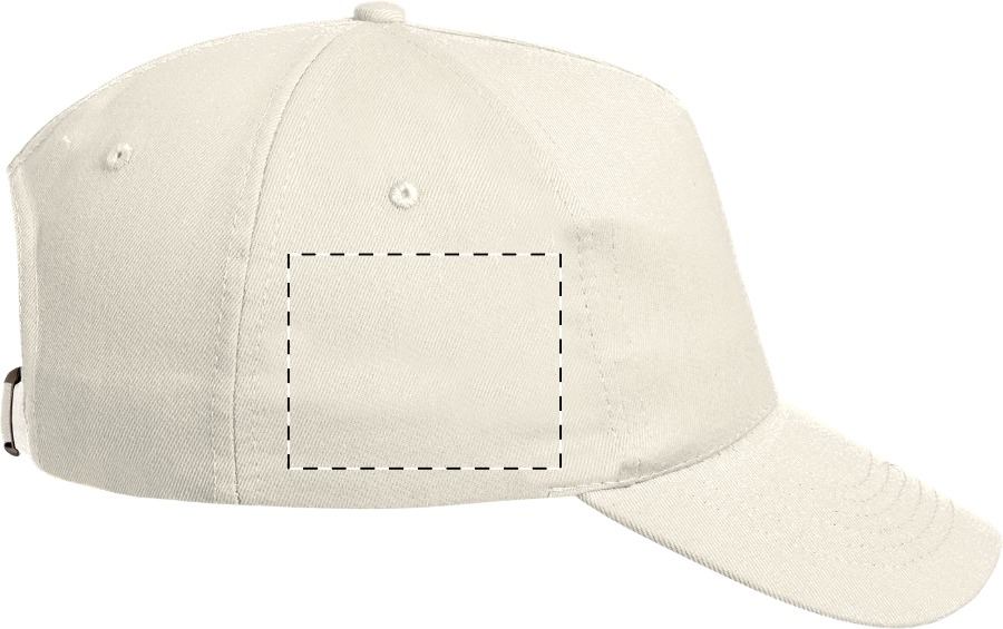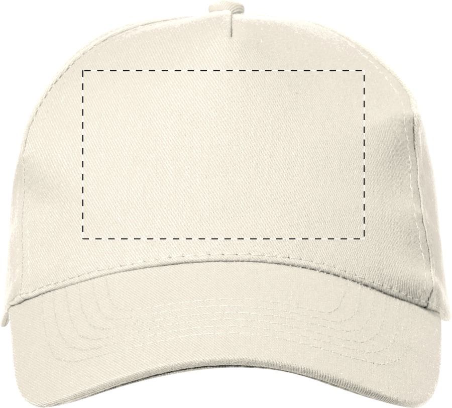 Cappellino da baseball in cotone riciclato con 5 pannelli e chiusura con fibbia in metallo.