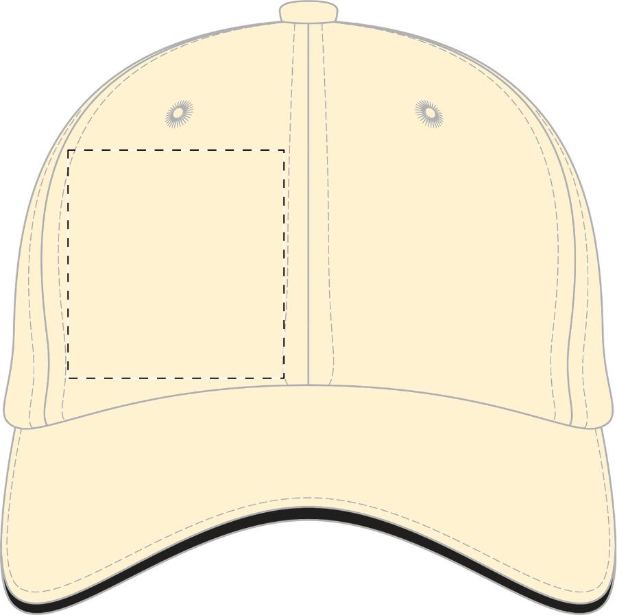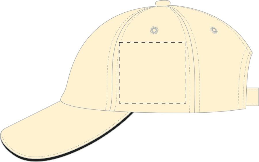 Cappellino 6 pannelli in 100% cotone spazzolato e chiusura con fibbia in metallo.