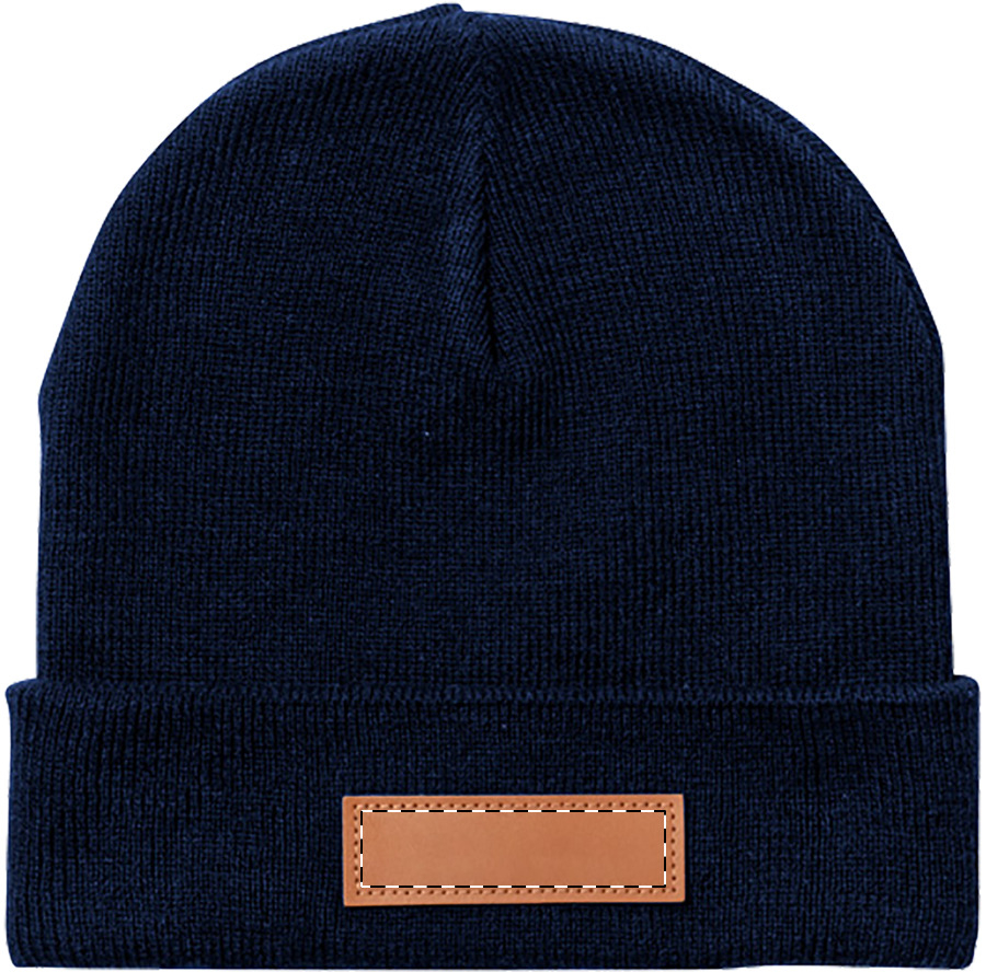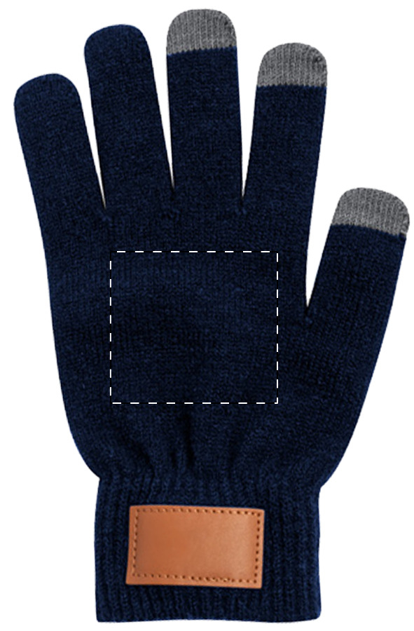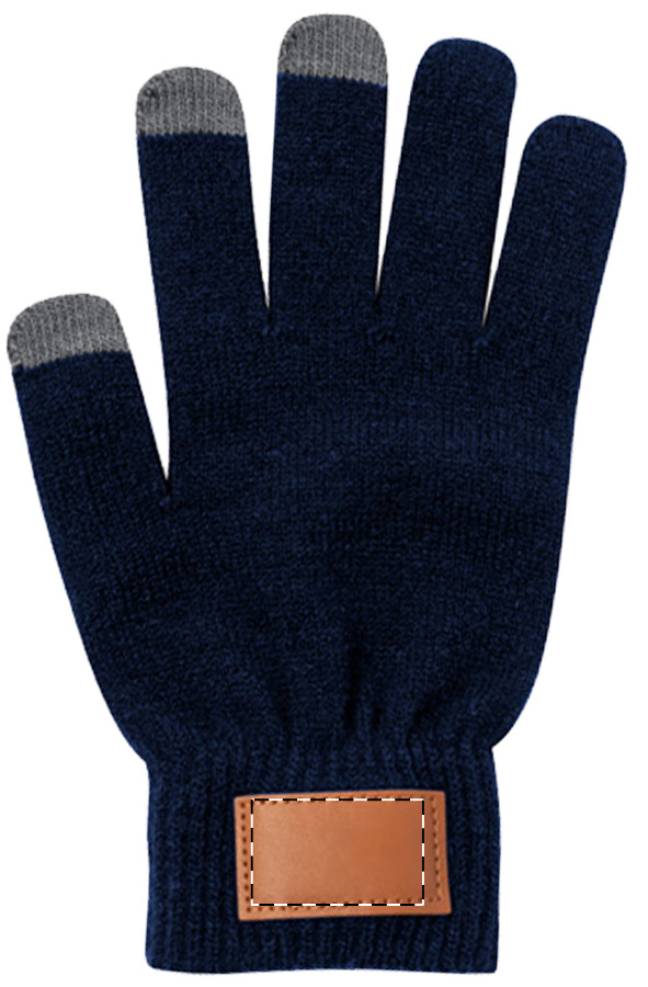 Cappello invernale in tessuto acrilico e guanti capacitivi con applicazioni in pelle PU stampabili, taglia unica per adulti.