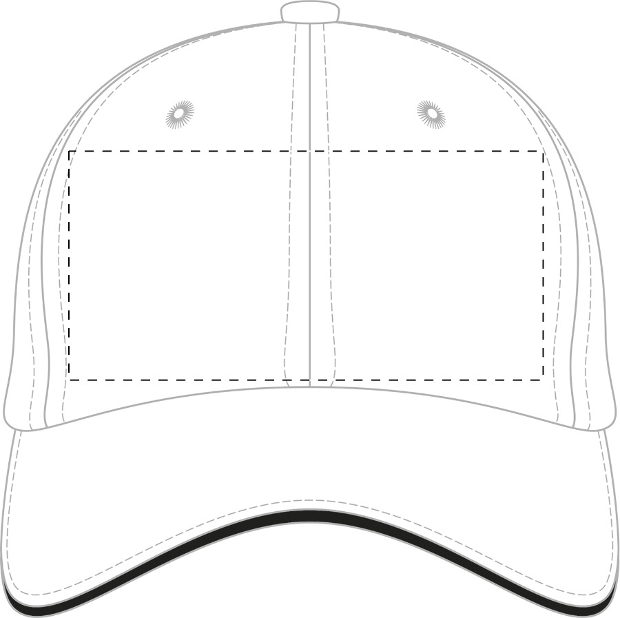 Cappellino da baseball 6 pannelli, 100% cotone spazzolato, chiusura con velcro.