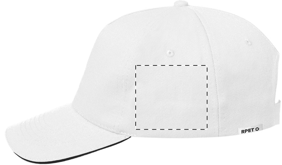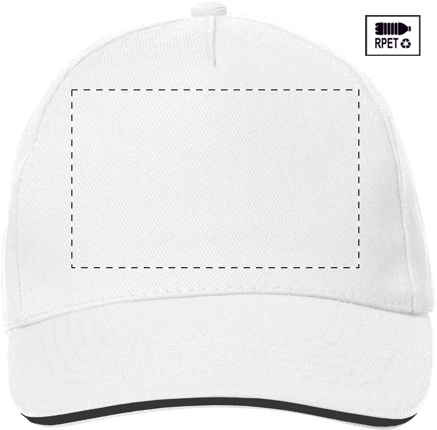 Cappellino da baseball in poliestere RPET a 5 pannelli con chiusura in velcro.