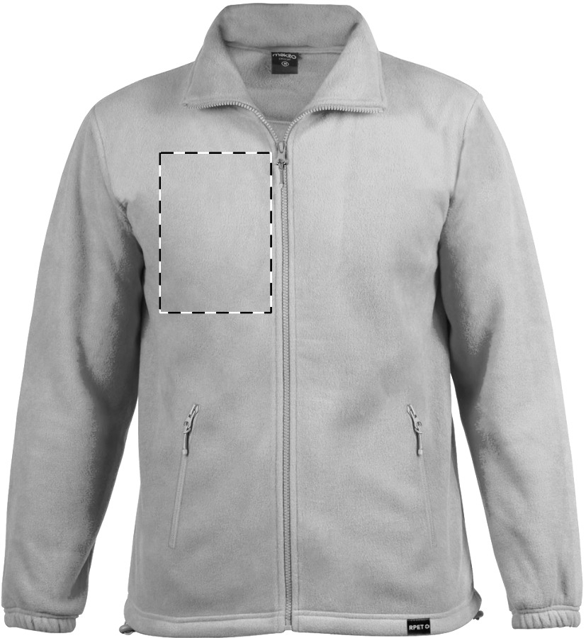 Giacca in pile antipilling 100% poliestere RPET (280 g/m²) con 2 tasche chiuse da cerniera ed etichetta RPET.