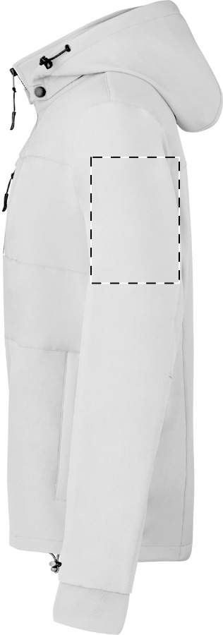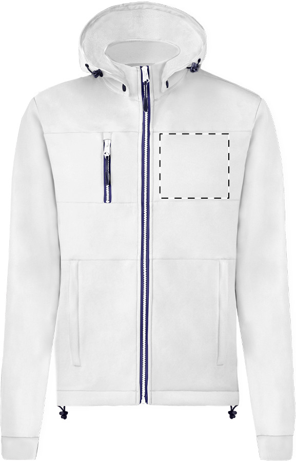 Giacca softshell antivento e impermeabile con zip, 2 tasche laterali, 1 tasca frontale, collo alto e cappuccio staccabile. 100% poliestere, 300 g/m².