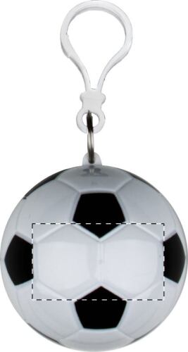 Poncho in confezione a forma di palla da calcio e moschettone. Taglia unica per adulti. Dimensioni poncho 1200×900 mm. Materiale: PE.