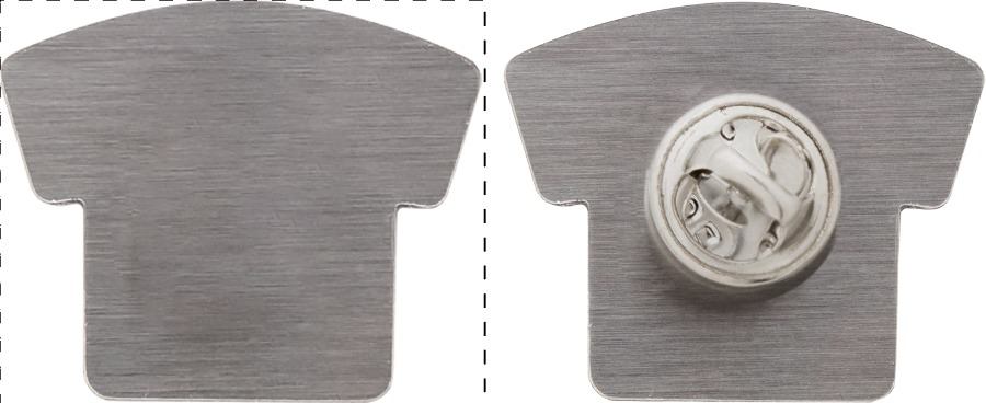 Spilla in metallo a forma di maglietta con adesivo epossidico. Il prezzo include la stampa.