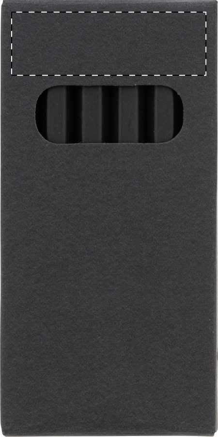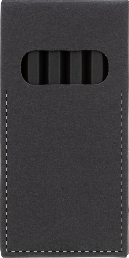 Set di 6 matite in legno nero contenute in una scatola di cartoncino nero.