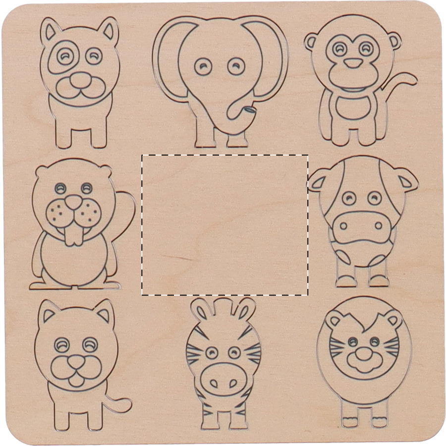 Gioco da colorare con abbinamento figure in compensato di betulla con sacchetto in juta. Il gioco comprende figure fustellate a tema (8 pezzi) e matite colorate in legno (12 pezzi) contenute in una scatola di cartoncino.