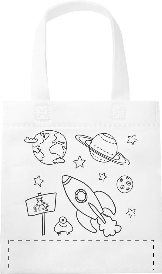 Borsa shopper in TNT per bambini da decorare, fornita con 5 pastelli.