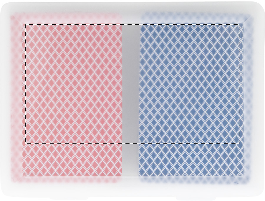 Set di carte da gioco classiche in carta in una scatola in PP riciclato. Include due mazzi standard da 54 carte con dorso rosso e blu.