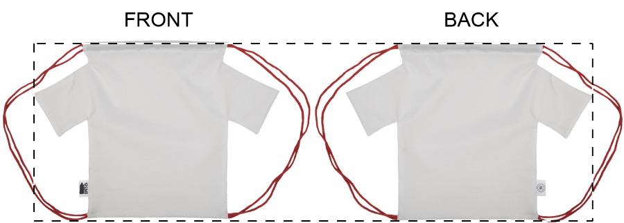 Sacca per bambini in poliestere 190T RPET a forma di maglietta personalizzabile, con chiusura coulisse e cordoncini colorati. Con grafica stampata in sublimazione su tutta la superficie ed etichetta RPET. MOQ: 25 pezzi.