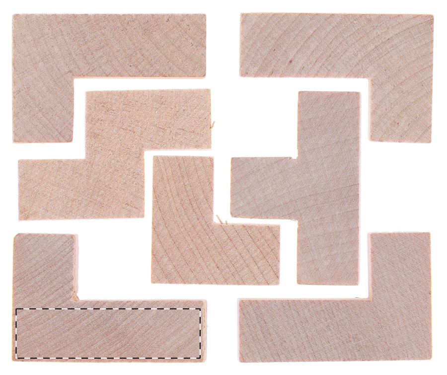 Puzzle cubo magico in legno, in sacchetto in cotone naturale colorato. Dimensioni sacchetto: 96×165 mm.