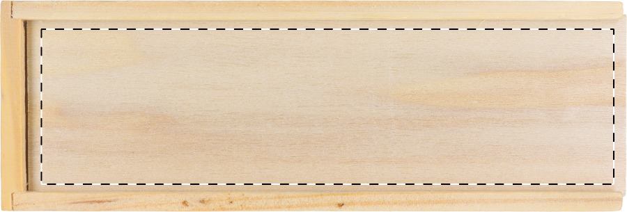 Gioco del domino con 28 tessere in legno con grafica tematica e scatola di legno.