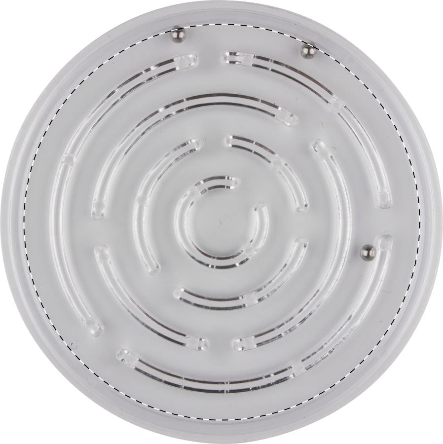 Gioco di abilità in plastica con 3 sfere di metallo in un labirinto. Il prezzo include la stampa digitale su 2 lati. Ordine minimo: 100pz.