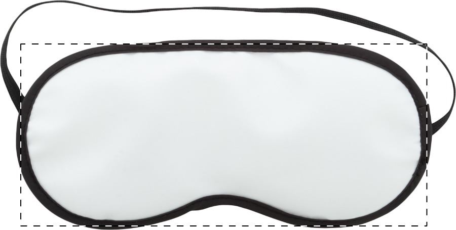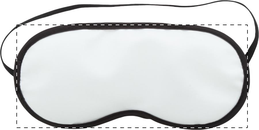 Mascherina cortesia per occhi in poliestere (140 g/m²), con imbottitura in spugna, profili e fascetta neri. Con grafica stampata in sublimazione su tutta la superficie. MOQ: 100 pz.