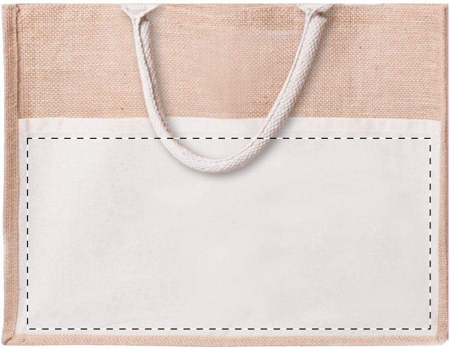 Borsa da spiaggia in juta laminata con manici in cotone e tasca frontale.