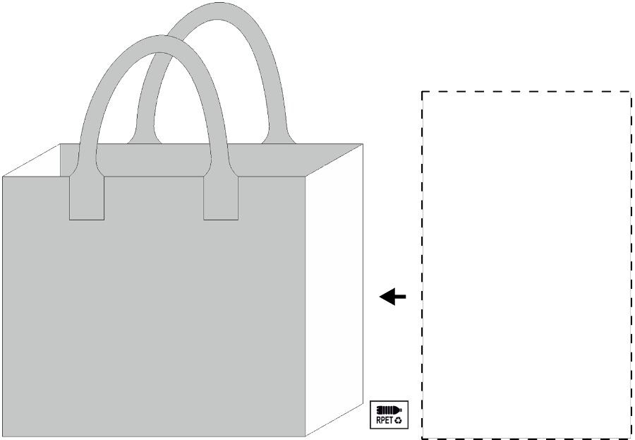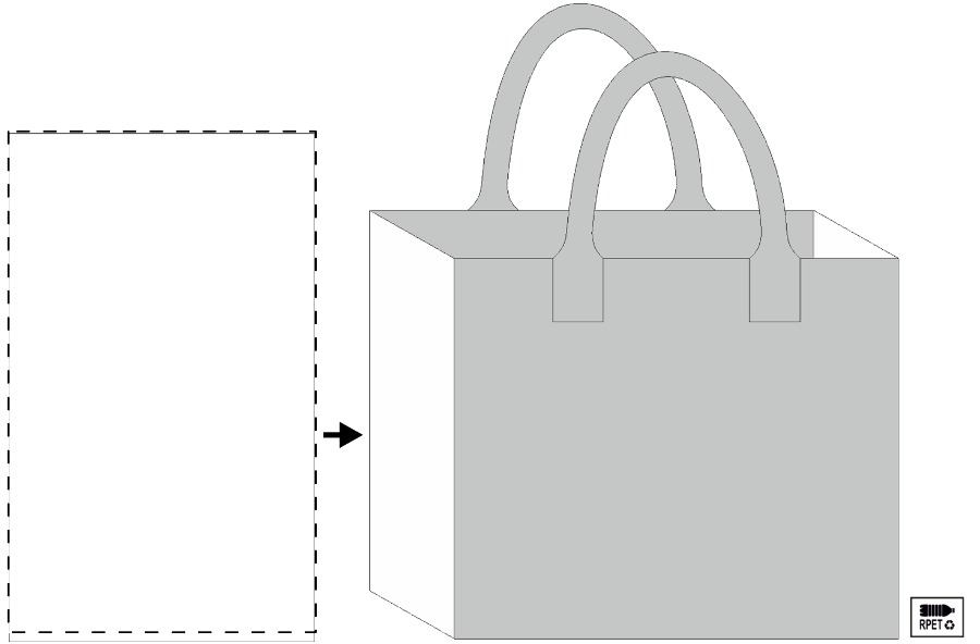 Borsa per la spesa in feltro RPET personalizzabile, con manici corti, soffietti laterali stampati a colori ed etichetta RPET. Il costo include la stampa in sublimazione. MOQ: 25 pezzi.
