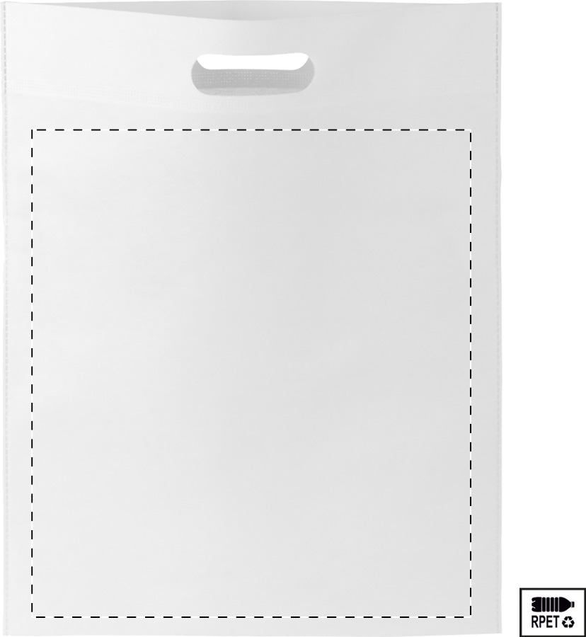 Borsa per la spesa in TNT RPET con manici fustellati, 70 g/m². Con etichetta RPET.
