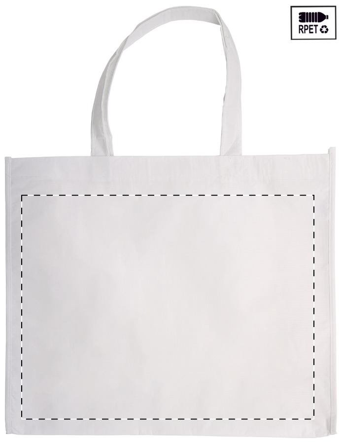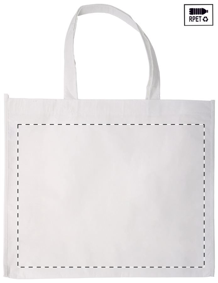 Borsa per la spesa in poliestere RPET laminato con soffietto, manici medi ed etichetta RPET. 105 g/m².