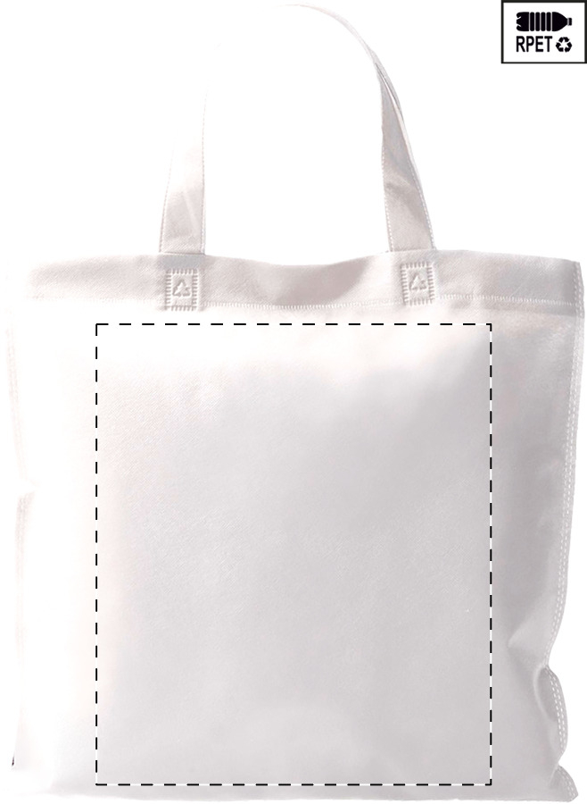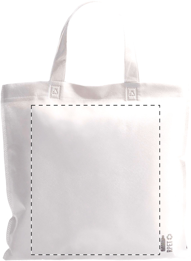 Borsa per la spesa in TNT RPET con manici mediamente lunghi, 70 g/m². Con etichetta RPET.