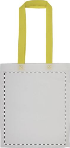 Borsa per la spesa bianca in tessuto non tessuto e manico colorato. 75 gr / m².