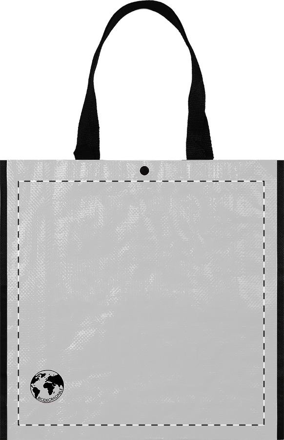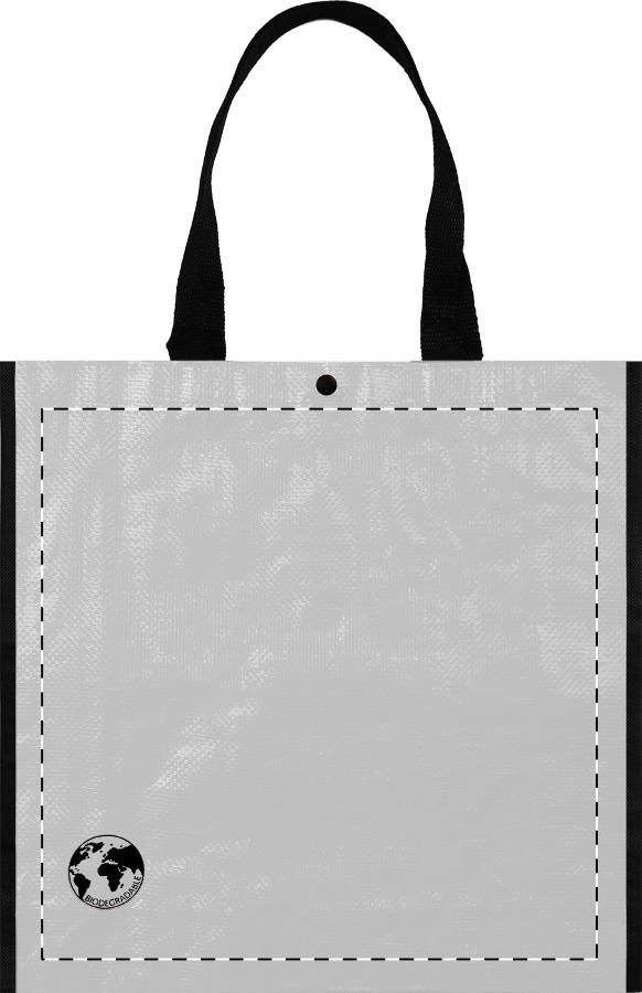 Shopper in PP 120 g/m² biodegradabile con chiusura a pressione.