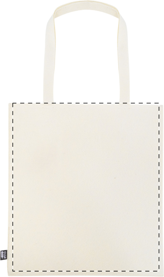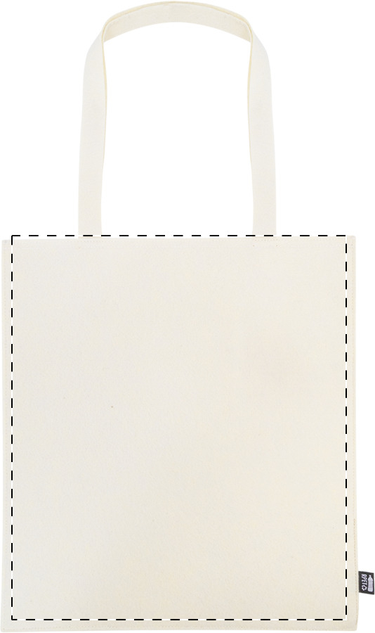 Shopper in feltro RPET con soffietto, manici lunghi ed etichetta RPET.