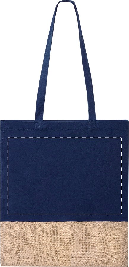 Borsa per la spesa bicolore in cotone e juta con manici lunghi, 120 g/m².