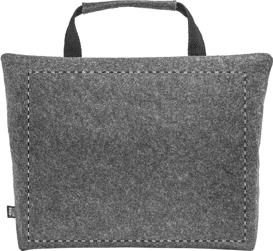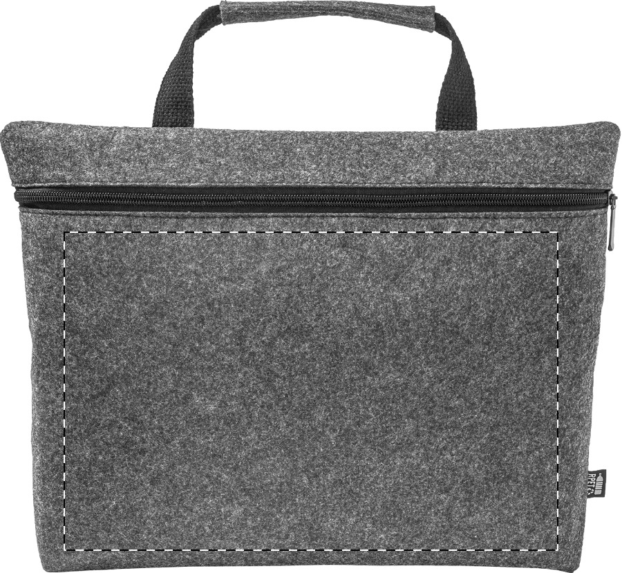 Borsa portadocumenti o computer portatili fino a 15" in feltro RPET, con scomparto principale e tasca interna chiuse da cerniera ed etichetta RPET.