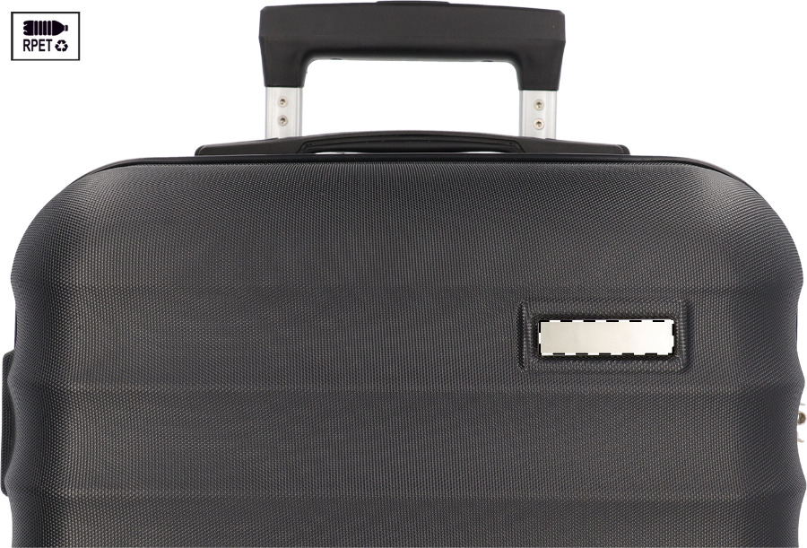 Trolley rigido da 20 pollici in RPET con 4 ruote, maniglia telescopica e chiusura a combinazione. Con rivestimento interno in RPET e cinghie di fissaggio elastiche. Con piastra metallica per l'incisione del logo