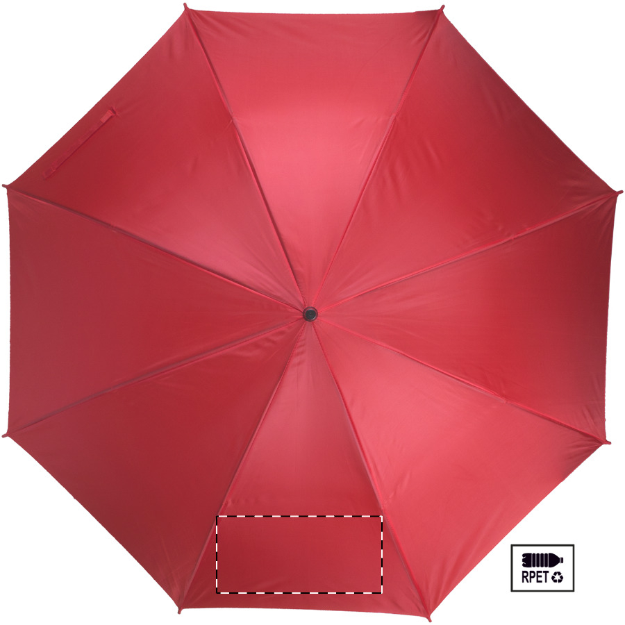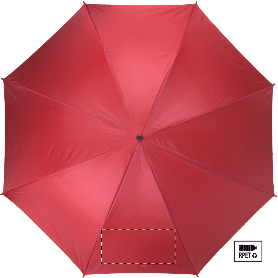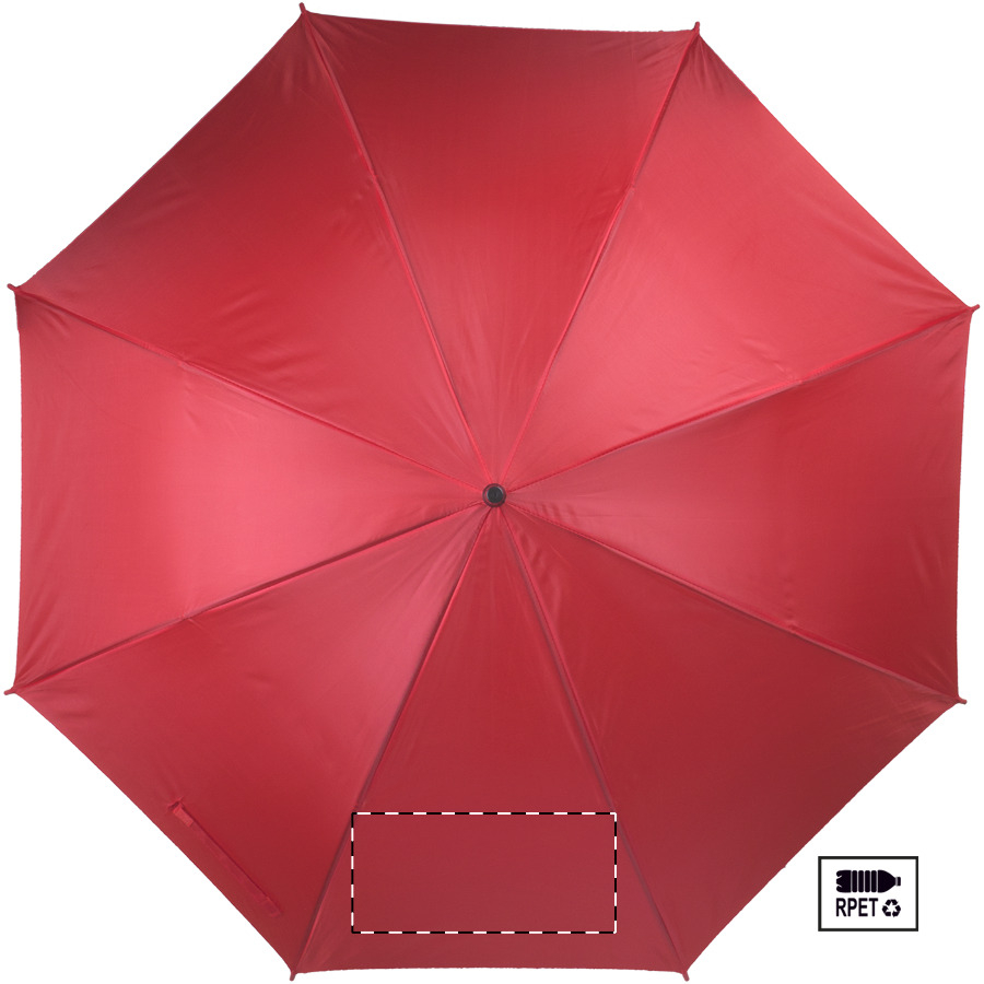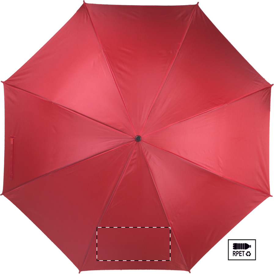 Ombrello automatico ad 8 pannelli, struttura in metallo, fusto, manico e puntale in legno. Materiale: pongee 190T RPET con etichetta RPET.