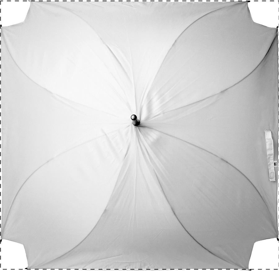 Ombrello automatico di forma quadrata, con fusto in metallo, stecche in fibra di vetro, manico in legno e grafica stampata in sublimazione. Materiale telo: Pongee 190T RPET. MOQ: 50 pz. Con etichetta RPET