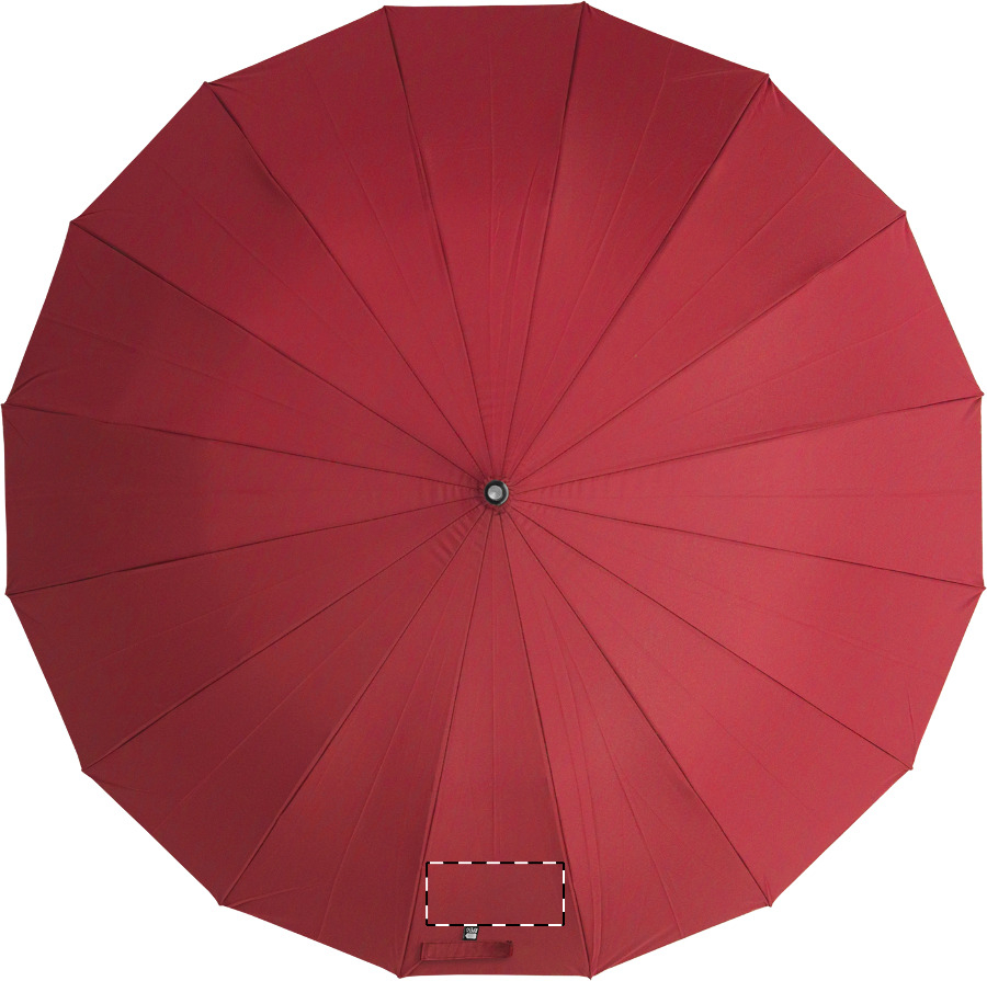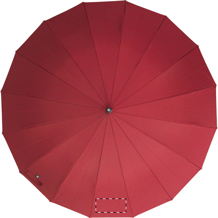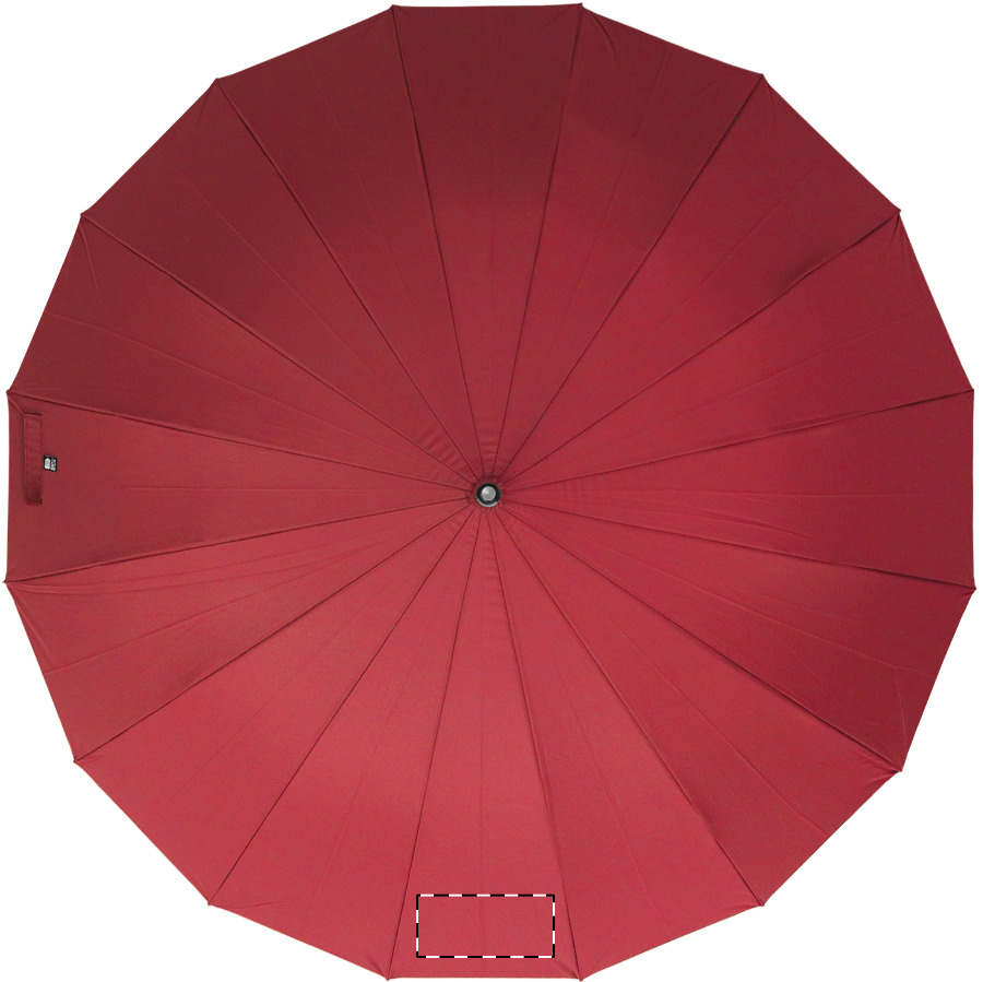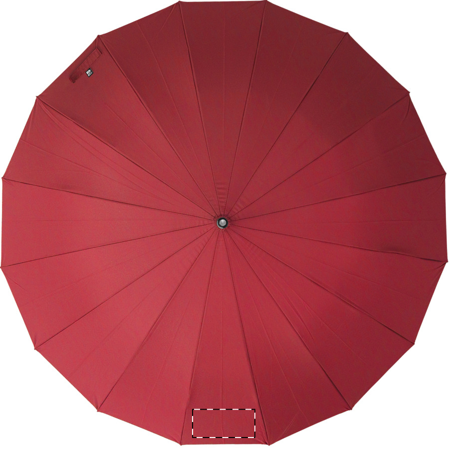 Ombrello automaticoin pongee 190T antivento di grandi dimensioni con 16 pannelli, manico in pelle PU, struttura in metallo, stecche in fibra di vetro, etichetta RPET e custodia.Prodotto a marchio André Philippe.