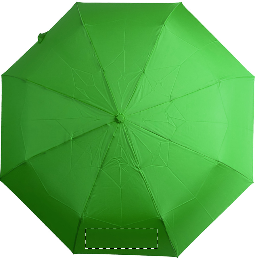 Ombrello antivento pieghevole completamente automatico (apertura/chiusura), con 8 pannelli, astuccio in colore coordinato, struttura in metallo, stecche in fibra di vetro e manico in bambù. Pongee RPET 190T ed etichetta RPET.