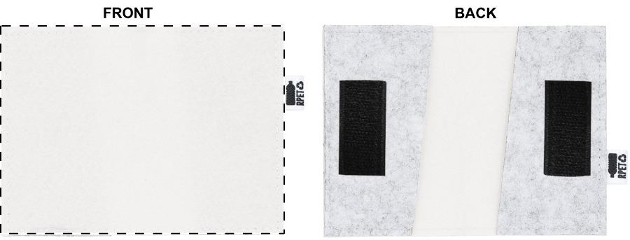 Portacarte di credito in feltro RPET con 2 slot, personalizzabile con stampa a colori chiusura in velcro ed etichetta RPET. Il costo comprende la stampa in sublimazione. MOQ: 50 pezzi.