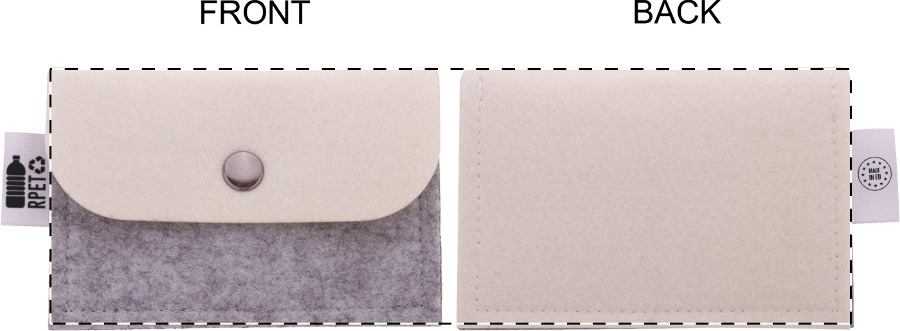 Borsellino in feltro RPET personalizzabile con stampa a colori su risvolto frontale e retro, con etichetta RPET. Il costo comprende la stampa in sublimazione. MOQ: 50 pezzi.