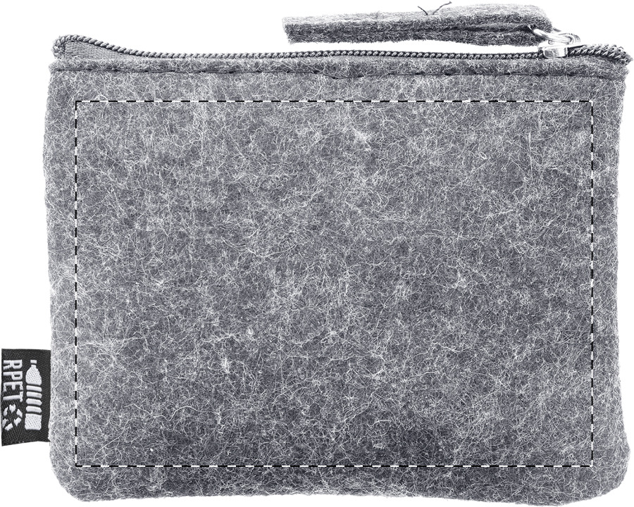 Borsellino in feltro RPET con cerniera ed etichetta RPET.
