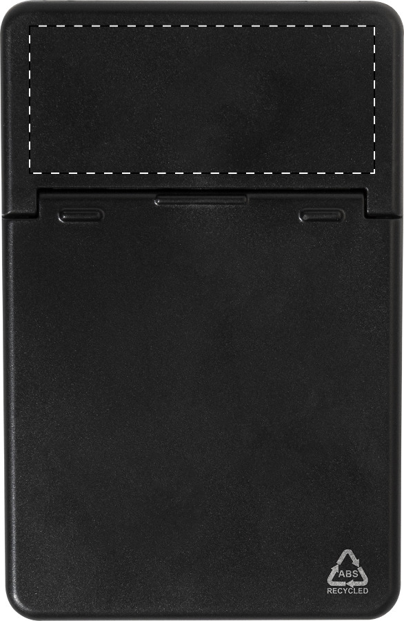 Portacarte di credito in ABS riciclato con funzione di blocco RFID, supporto per cellulare, attacco magnetico per telefono ed anello metallico autoadesivo per cellulari privi di superficie magnetica.