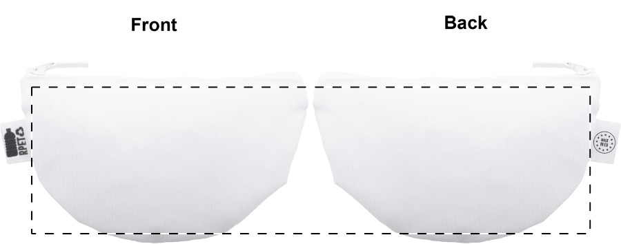 Portamonete personalizzabile in poliestere 600D RPET a forma di mezza luna, con cerniera, etichetta RPET e grafica stampata in sublimazione su tutta la superficie. MOQ: 50 pezzi.