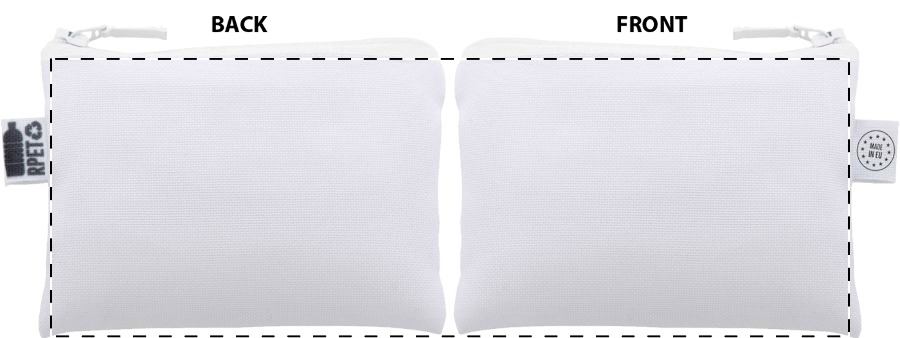 Borsellino personalizzabile in poliestere 600D RPET, chiusura con cerniera, etichetta RPET e grafica stampata in sublimazione su tutta la superficie. MOQ: 50 pezzi.