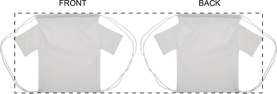 Sacca in poliestere 190T a forma di maglietta personalizzabile, con chiusura a coulisse, cordoncini colorati e grafica stampata in sublimazione su tutta la superficie. MOQ: 25 pezzi.