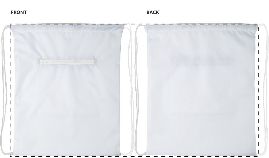 Sacca personalizzabile in poliestere 190T con coulisse e tasca frontale provvista di cerniera. Con grafica stampata in sublimazione su tutta la superficie. MOQ: 25 pz.