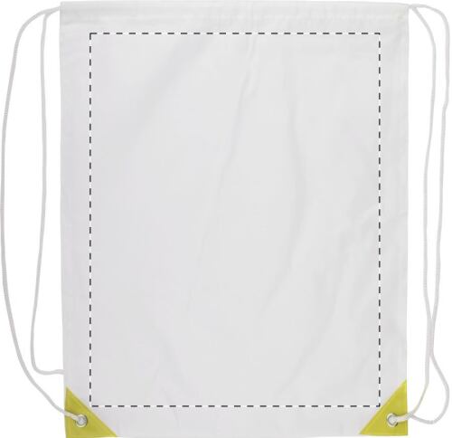 Sacca con chiusura a coulisse in poliestere 210T, angoli rinforzati e colorati.