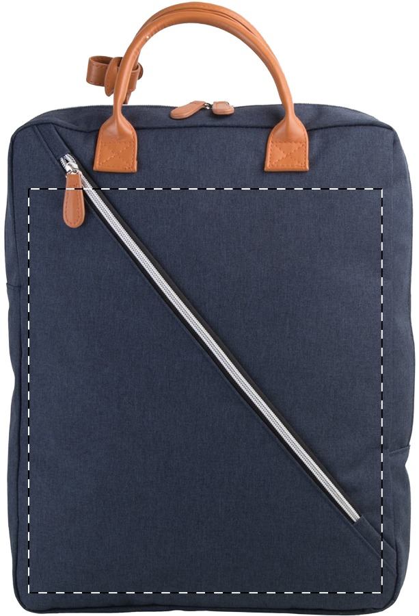 Zaino con scomparti e cerniera, tasca imbottita per computer portatile, manici in pelle PU e tracolla regolabile. Poliestere duotone 300D.
