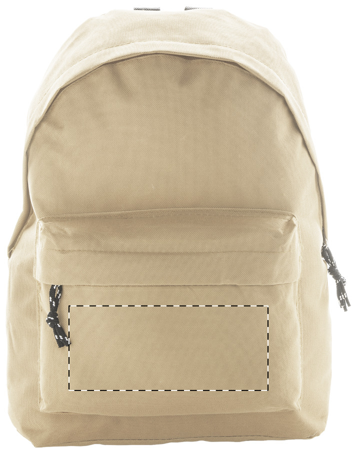 Zaino con tasca frontale e cerniera, schienale imbottito e spallacci. Poliestere 600D.