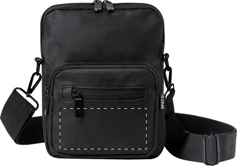 Borsa a tracolla in poliestere 600D RPET con scomparti chiusi da cerniera, tracolla regolabile ed etichetta RPET.