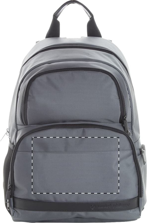 Zaino con tasche multiple e zip, scomparto imbottito per computer portatile, schienale e spallacci imbottiti. Realizzato in poliestere 420D a doppio strato. Prodotto a marchio André Philippe.