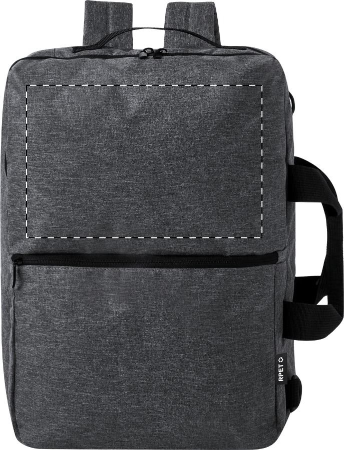 Zaino borsa portadocumenti in poliestere 600D RPET con tasche chiuse da cerniera, scomparto imbottito per laptop (15"), schienale e spallacci imbottiti ed etichetta RPET.