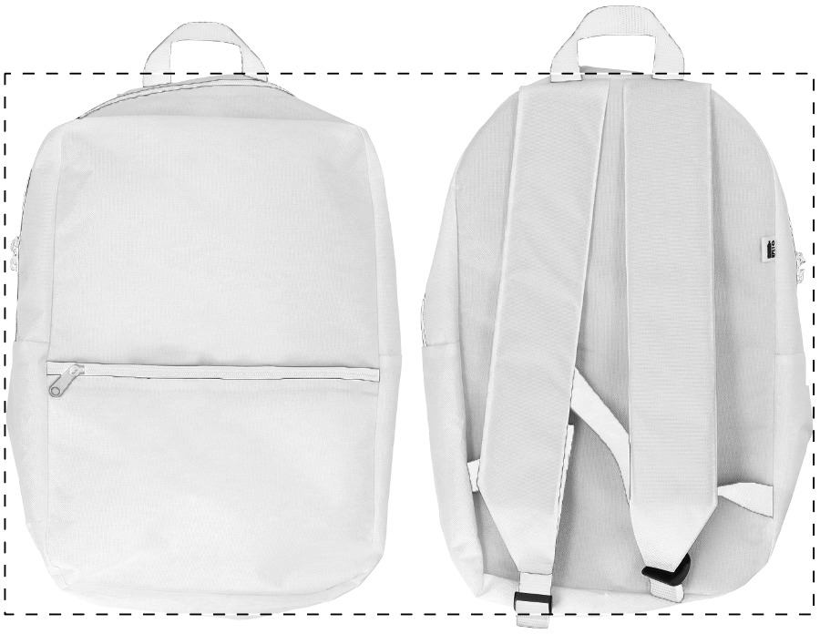 Zaino in RPET personalizzabile con scomparto principale e tasca frontale con cerniera, schienale, spallacci imbottiti e grafica stampata in sublimazione su tutta la superficie. Poliestere 600D RPET ed etichetta RPET. MOQ: 25 pezzi.