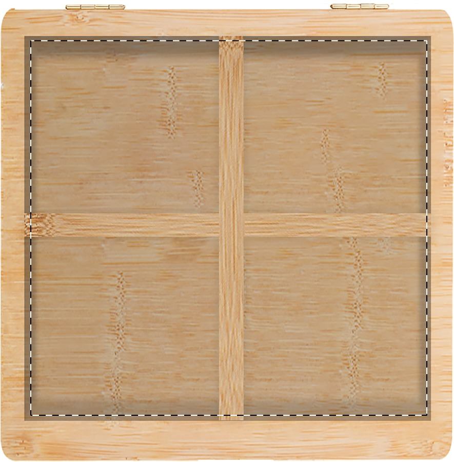 Scatola per il tè in bambù con coperchio in acrilico trasparente e 4 scomparti.