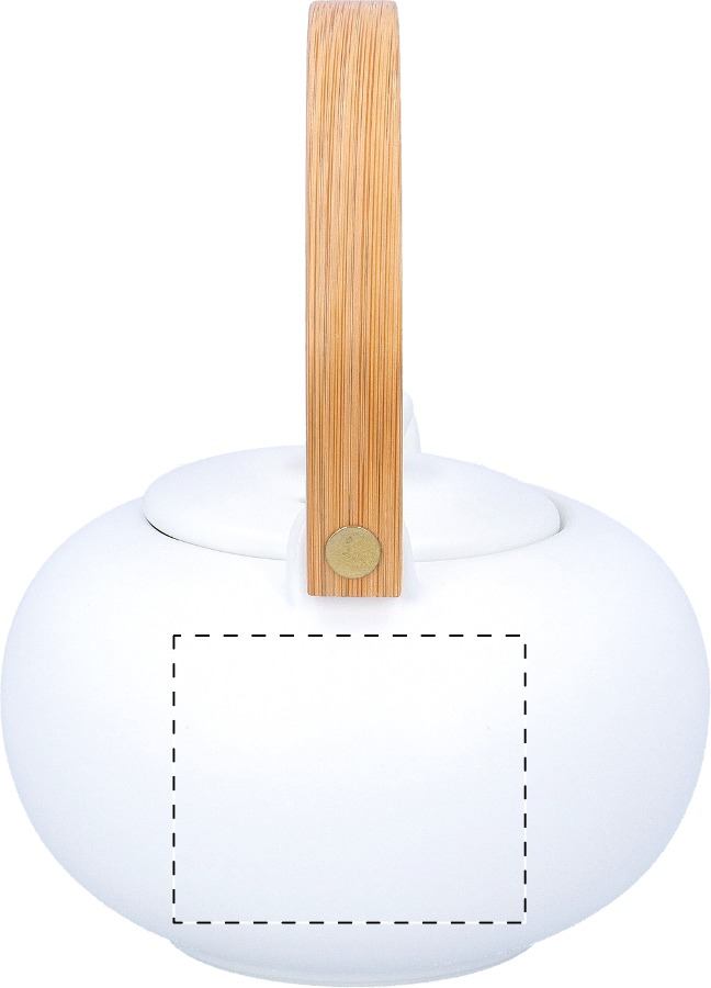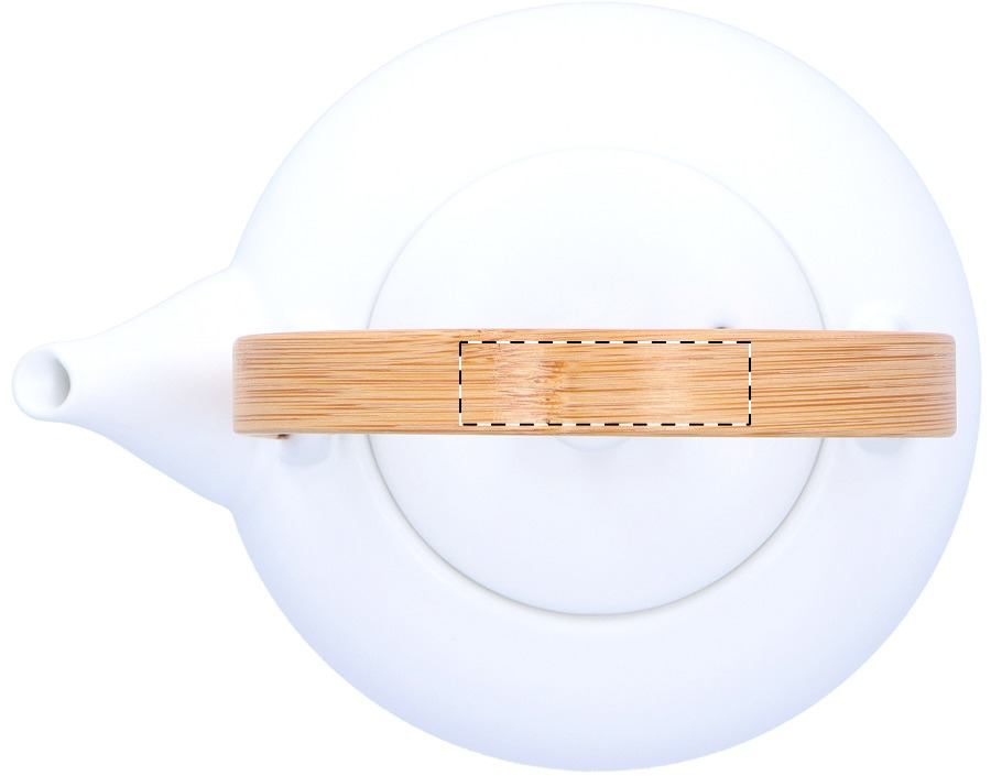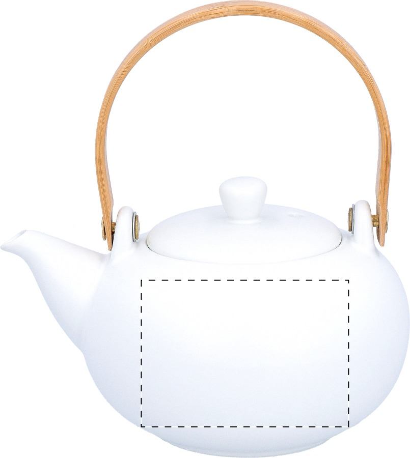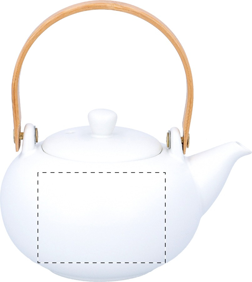 Set da tè in ceramica che comprende una teiera con manico in bambù (600 ml) e due tazze (110 ml). In scatola di carta kraft.